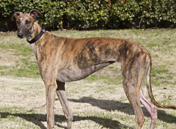 Angel, aka CSL Wild Angel, is a 3½-year-old brindle female born October 18, 2008. Her sire is Craigie Whistler and her dam is Y Knot Cady. Angel has 35 races to her credit on Greyhound-data.com, all at Gulf Greyhound Park - she was quite the racer, competing in the AA class! Her record of races starts on October 8, 2010 and ends on April 28, 2011. She broke her leg in November 2011, and it was repaired, however she is suffering from complications due to a bone infection and joined the GALT family to receive necessary treatment.